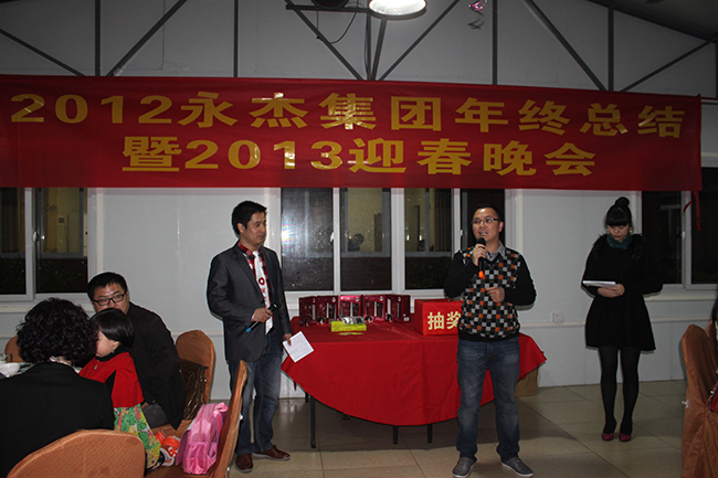 时光飞逝,转眼间又到了新的2013年。 永杰集团全体同仁欢聚一堂,喜庆昨日的辉煌业绩,展望公司的美好未来! 这个年末的喜庆时刻,是为了总结一年的成就,畅想更加辽阔而丰硕的未来。 回顾2012年,永杰集团在全体员工的团结协作下,按照各级组织的工作思路、目标、任务,立足本职,勤奋努力、拼搏向上,积极展开工作,较好完成了下达的各项指标任务。 2012年是有意义的、有价值的、有收获的一年。为缓解员工压力,增强团体凝聚力,永杰集团组织全体员工于2013年1月26日参加迎新春暨年度总结活动。 当永杰集团陈可永总经理为我们恢弘展示各公司的成就与未来宏伟蓝图之时,那一种雄壮与激扬的气场在偌大的会场上久久萦绕,激荡着在座的众位同事,亦深深地震撼着永杰人的心灵。